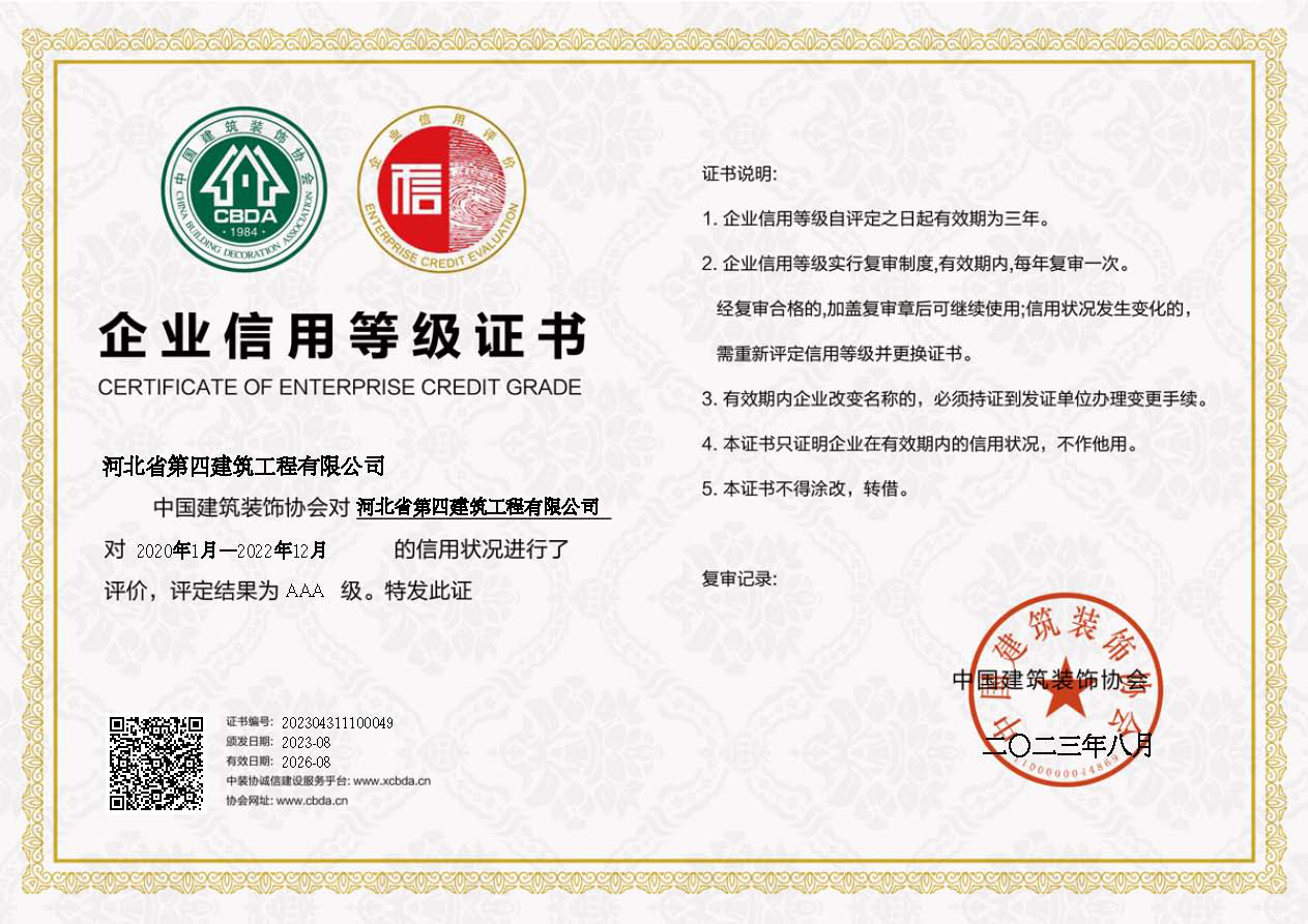 2023年河北省建協(xié)AAA信用等級證書(shū)