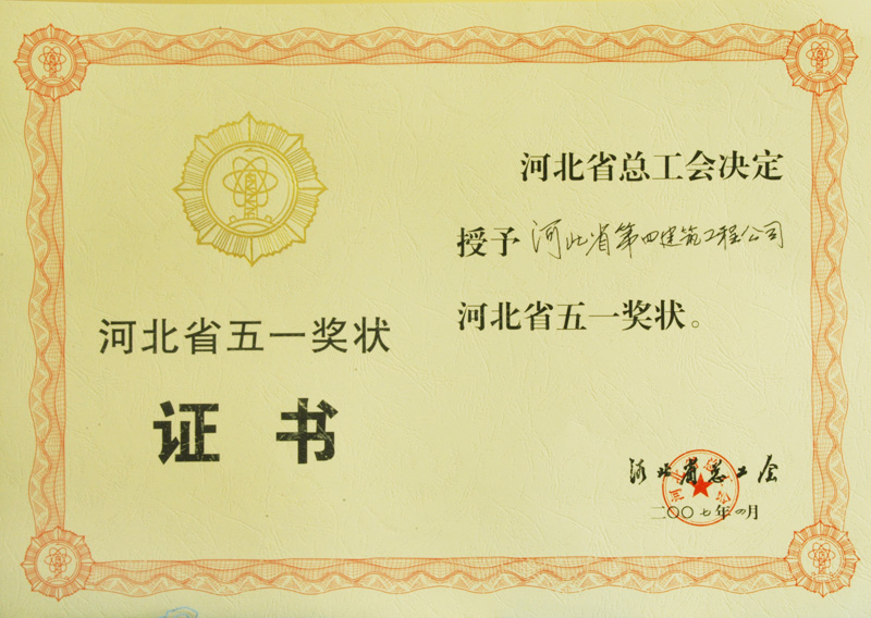 河北省五一獎狀