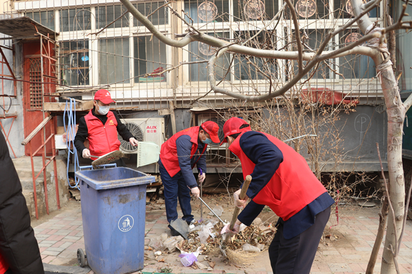 上午9點(diǎn),志愿者們身穿志愿服務(wù)紅色馬甲,手拿勞動(dòng)工具一路興致高昂地來(lái)到省四建小區。經(jīng)過(guò)與物業(yè)溝通勞動(dòng)內容后,大家迅速行動(dòng)起來(lái),有的拿笤帚清掃小區主干道上的煙頭、紙屑,有的拖著(zhù)垃圾桶收集清掃的垃圾,大家不怕臟、不怕累,爭先恐后,一片熱火朝天的景象,不一會(huì )兒一條干凈整潔的道路就呈現在小區居民面前。