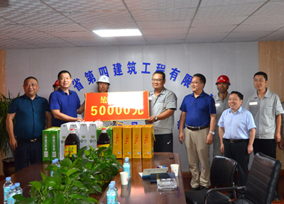 8月5日,河北省省直工會(huì )副主任馬永紅、辦公室主任馬濤,冒雨到四分公司石鋼項目部進(jìn)行暑期慰問(wèn),為項目職工送上五谷雜糧、食用油等物品及慰問(wèn)金。省四建公司黨委書(shū)記、董事長(cháng)董富強,黨委副書(shū)記、工會(huì )主席李懷生一同參加。