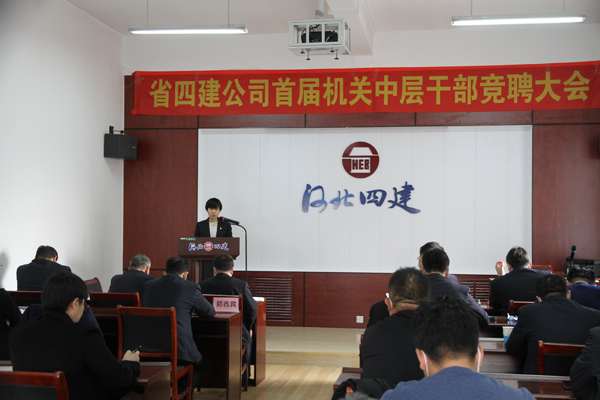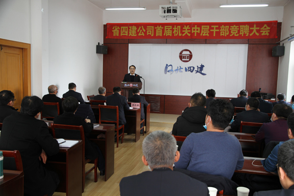 公開(kāi)競聘選賢才,四建才俊展風(fēng)采。2021年2月24日,省四建公司首屆機關(guān)中層正職崗位競聘會(huì )在四樓培訓中心舉行。30人(次)英才跨上講臺,暢談自己對11個(gè)中層正職崗位的履職目標和創(chuàng )新舉措,為公司各部門(mén)的管理獻計獻策。這是公司成立以來(lái)首次機制改革大規模人才選拔考評活動(dòng)。公司黨委書(shū)記董事長(cháng)董富強發(fā)表開(kāi)賽致辭和總結講話(huà)。公司黨委副書(shū)記、紀委書(shū)記、工會(huì )主席李懷生主持競聘大會(huì )。