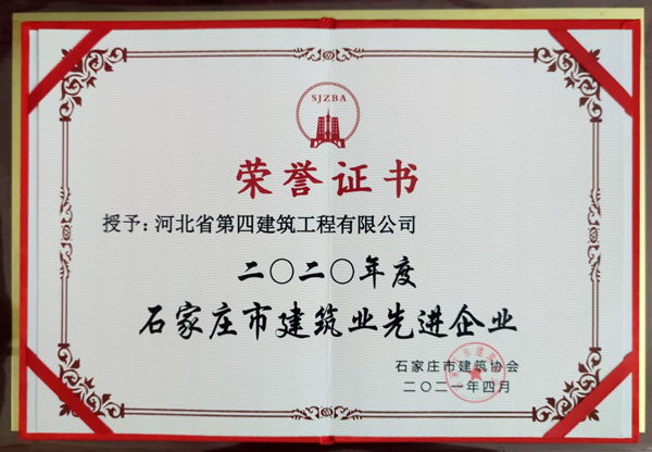 4月9日,公司在石家莊市建筑協(xié)會(huì )七屆三次理事會(huì )上喜獲“2020年度石家莊市建筑業(yè)綜合實(shí)力十強企業(yè)第一名”“2020年度石家莊市建筑業(yè)先進(jìn)企業(yè)”兩項榮譽(yù);公司副總經(jīng)理張新煜被評為“優(yōu)秀企業(yè)經(jīng)理”,公司副總工程師陳增順被評為“優(yōu)秀總工程師”,董艷紅等11名同志被評為“優(yōu)秀項目經(jīng)理”。公司總經(jīng)理唐志強受邀出席了本次會(huì )議。