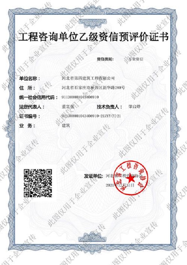 1月6日,設計院喜獲“工程咨詢(xún)單位(建筑)乙級資信預評價(jià)證書(shū)”。設計院將可在本專(zhuān)業(yè)內承攬建設項目的工程咨詢(xún)業(yè)務(wù),新業(yè)務(wù)的注入為設計院帶來(lái)新的活力,標志著(zhù)設計院在工程咨詢(xún)服務(wù)領(lǐng)域迎來(lái)廣闊的發(fā)展空間。