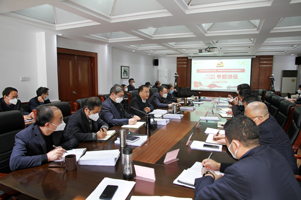 窗外寒風(fēng)陣陣,室內暖意融融。2023年1月6日,公司領(lǐng)導班子成員、各部室負責人、各分公司主要負責人齊聚公司三樓會(huì )議室,聆聽(tīng)公司黨委書(shū)記、董事長(cháng)董富強作學(xué)習黨的二十大精神專(zhuān)題講座。
