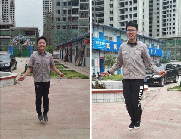 各項目部根據場(chǎng)地條件自行制定比賽內容,讓職工們自由選擇,有羽毛球、跳繩、踢毽子等。所有活動(dòng)中比較熱鬧的有許昌項目部的跳繩比賽,青年職工回軍帥、唐文耀、李詩(shī)奇、劉彥、肖博文等兩人搖、多人魚(yú)貫順序跳的長(cháng)繩賽,李政良,高巖單人雙手搖、自搖自跳的短繩賽,他們配合協(xié)條性好,單次跳的數量最多,迎來(lái)場(chǎng)外職工陣陣喝彩。