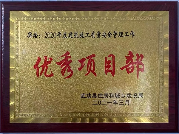 4月25日,武功縣住房和城鄉建設局表彰了2020年度建筑施工、房地產(chǎn)開(kāi)發(fā)和物業(yè)管理工作先進(jìn)集體和先進(jìn)個(gè)人,四分公司陜西金沙河項目榮獲“2020年度建筑施工質(zhì)量安全管理工作優(yōu)秀項目部”稱(chēng)號。
