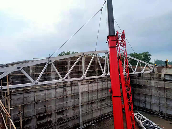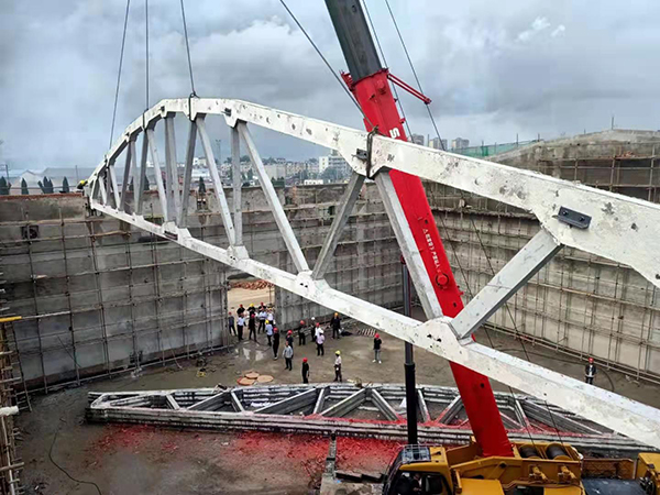 5#平房倉的倉頂由16榀預應力屋架梁和400塊屋面板構成,每榀預應力屋架梁重14.24噸,長(cháng)度達30米,平房倉的工作重點(diǎn)是預應力屋架梁的制作及吊裝,工作難度大、技術(shù)含量高,項目部緊抓屋架梁預制這道關(guān)鍵工序,提前謀劃,做好準備。