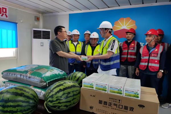 因近日持續高溫,現場(chǎng)的施工環(huán)境給堅守一線(xiàn)的施工人員帶來(lái)了嚴峻“烤”驗,也時(shí)刻牽動(dòng)著(zhù)分公司領(lǐng)導的心。6月12日,分公司黨支部書(shū)記、工會(huì )主席臧聯(lián)合到項目部詳細了解一線(xiàn)人員工作和生活情況,檢查消防和防暑降溫工作,為大家發(fā)放了西瓜、綠豆、藿香正氣口服液等防暑物品,為高溫下堅守崗位的項目職工帶來(lái)了“娘家人”的問(wèn)候和關(guān)懷,并叮囑大家要在保障自身安全前提下完成好項目工作。