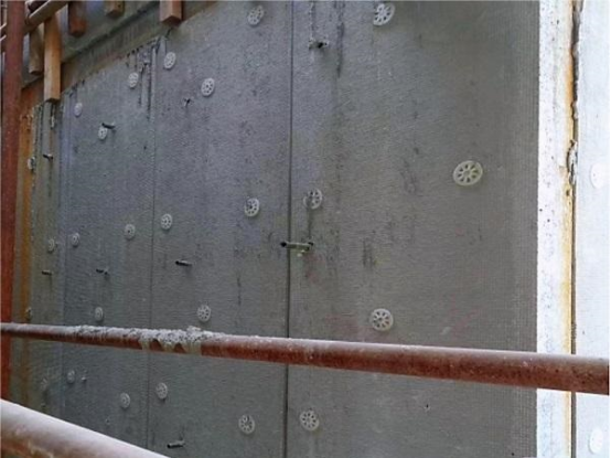 為此,項目部成立專(zhuān)門(mén)的課題實(shí)施小組,提出利用BIM技術(shù)繪制Revit模型,對復合保溫板進(jìn)行統一建模排版、分拆、編號、加工制作,再采用“三合一”技術(shù)創(chuàng )新方法開(kāi)展施工:一是基于3D打印技術(shù),設計了一種帶卡槽結構的新型墊塊,來(lái)控制鋼筋混凝土保護層厚度,二是制作加固直板,確保復合保溫板陰陽(yáng)角施工質(zhì)量,三是采取螺栓孔洞內填充防水砂漿、保溫砂漿封堵等措施,不僅增強了墻體的性能,還提高了外墻防滲防漏水性能,共同形成了“FW-Ⅲ復合保溫板與模板一體化支設工藝”科研成果。